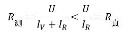 由于電壓表的分流作用使得被測電阻值小于電阻的真實值,當電壓表內阻越大的時候其分流作用越弱,被測電阻值就越接近真實值。