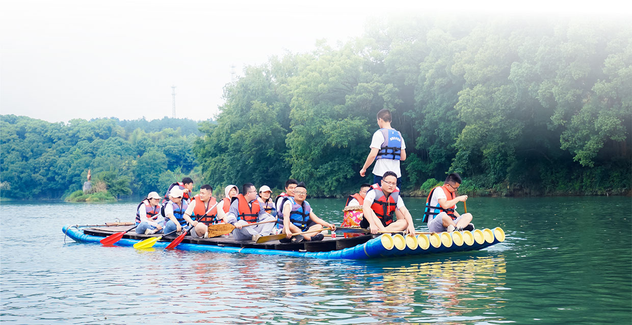 下午的竹筏挑戰(zhàn)賽,考驗的是大家團(tuán)隊合作力,在鼓手的指揮下,各位漿手整齊劃一,在各位成員的共同努力下,獲得了第二名的成績。在竹筏水戰(zhàn)的時候,各位男同事積極擋在女同事前面,迎戰(zhàn)各方攻勢。即使最終依舊難逃濕身狀態(tài),但每個人臉上都洋溢著歡樂。